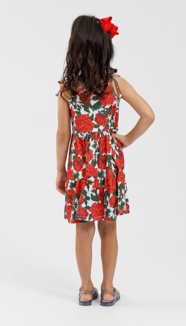 Vestido Canelado Infantil Feminino De Babado Com Alcinha De Amarração Estampado De Flores Azul Claro2 Vestidos por 99,90