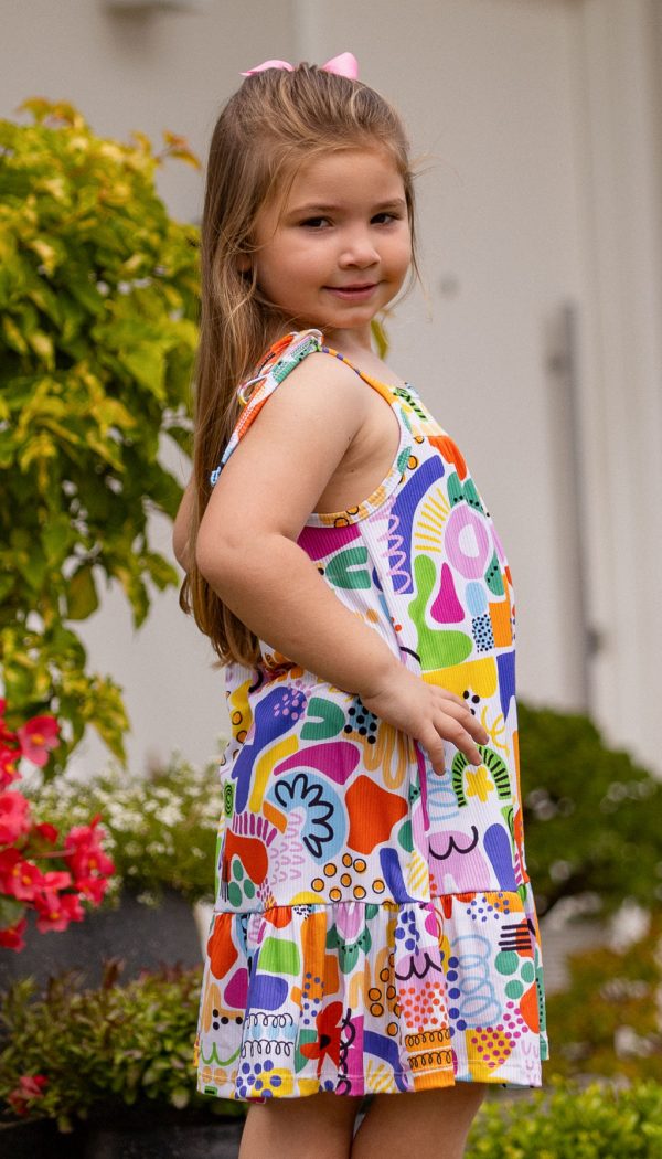 Vestido Canelado Infantil Feminino De Babado Com Alcinha De Amarração Estampado De Flores Azul Claro