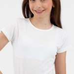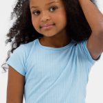 Blusa Infantil de Malha Canelada, manga curta, malha com elastano super confortável.
