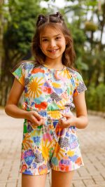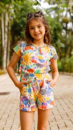 Conjunto macio, confortável e com elasticidade que permite as crianças brincarem. Com estampas exclusivas e cores lindas para as meninas, super versátil para a família, malha de excelente qualidade!