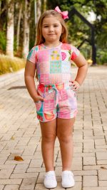 Conjunto macio, confortável e com elasticidade que permite as crianças brincarem. Com estampas exclusivas e cores lindas para as meninas, super versátil para a família, malha de excelente qualidade!