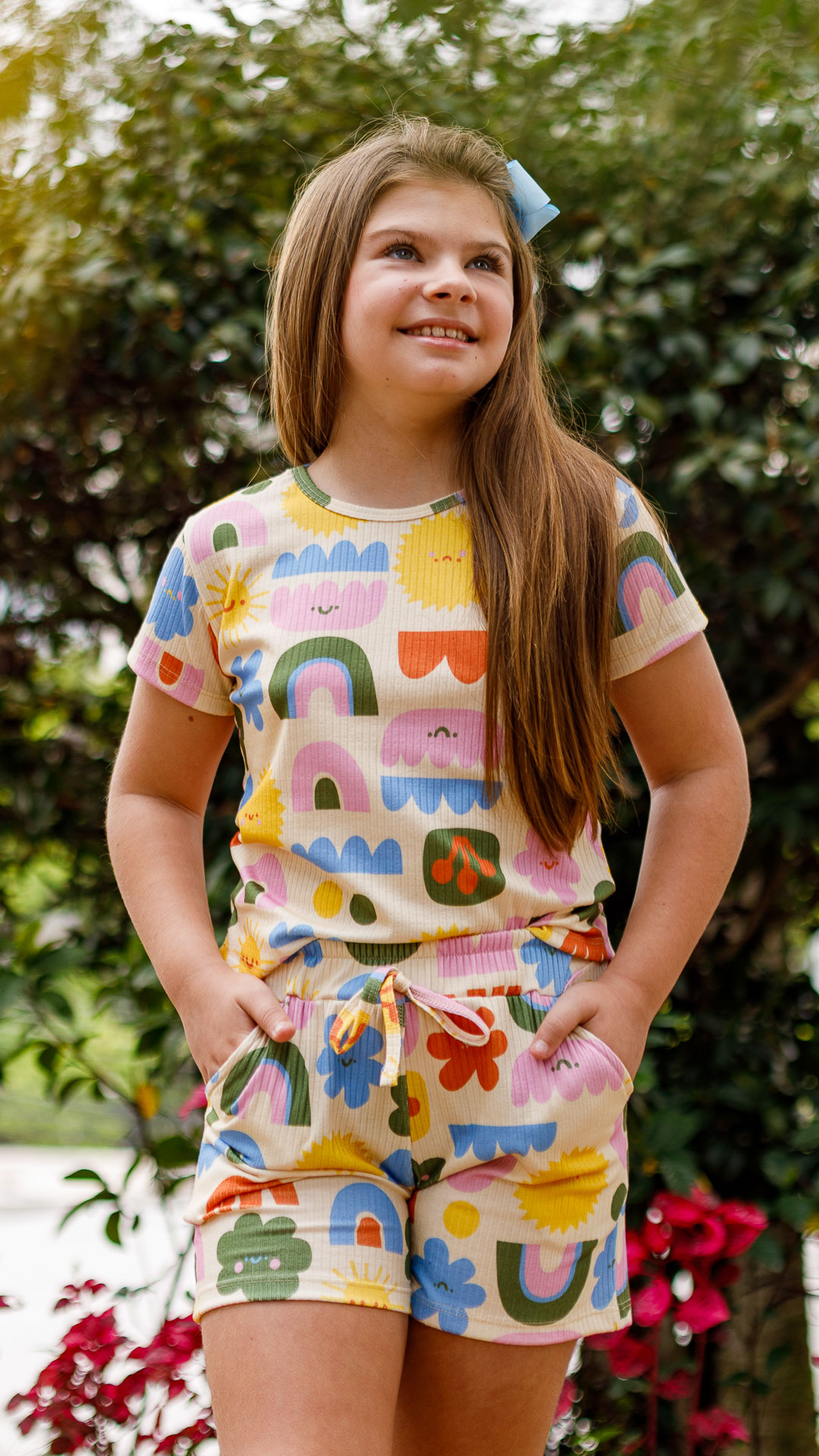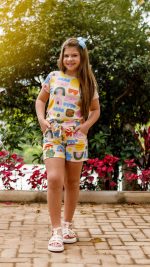 Conjunto macio, confortável e com elasticidade que permite as crianças brincarem. Com estampas exclusivas e cores lindas para as meninas, super versátil para a família, malha de excelente qualidade!
