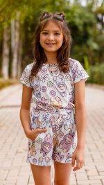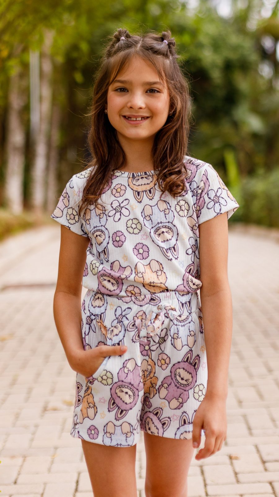 Conjunto macio, confortável e com elasticidade que permite as crianças brincarem. Com estampas exclusivas e cores lindas para as meninas, super versátil para a família, malha de excelente qualidade!