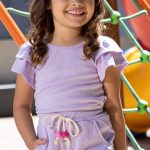 Conjunto Infantil de Blusa com manga de babado , e shorts com elástico na cintura, bolsos na frente e detalhe da cordinha.