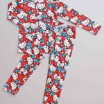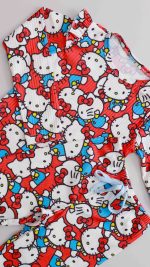 Conjunto Infantil Feminino Canelado De Blusa E Calça Estampa Hello Kitty Vermelho